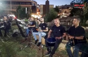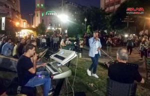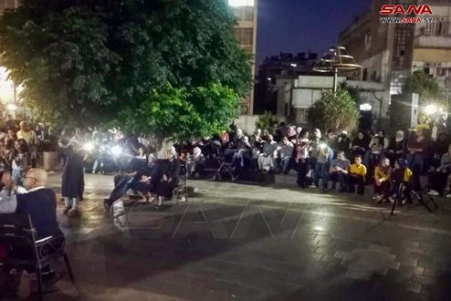 ضمن فعاليات حدائق الفن التي تنظمها وزارة الثقافة أحيا الفنان غزوان مدني وفرقته الموسيقية حفلاً غنائياً بالهواء الطلق في حديقة الدبلان بحمص وسط حضور محبي الطرب الأصيل.