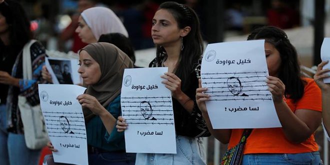 وذكرت وكالة وفا الفلسطينية أن المشاركين في المظاهرة وسط المدينة رفعوا العلم الفلسطيني وصور الشهداء والأسرى ورددوا شعارات تطالب بإطلاق سراح عواودة بشكل فوري وخاصة بعد تدهور حالته الصحية بشكل خطير اثر اضرابه الثاني عن الطعام لليوم الـ 42.