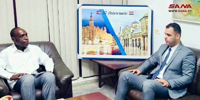 وخلال لقاء مدير إدارة العلاقات الثنائية بالنيابة في وزارة الخارجية الكوبية أنجيل فيلا هيرنانديز مع القائم بالأعمال بالنيابة للسفارة السورية لدى كوبا علي عباس بمقر الوزارة في هافانا أمس بمناسبة الذكرى الـ 57 لإقامة العلاقات الدبلوماسية بين البلدين أكد هيرنانديز رفض بلاده لكل الإجراءات والتدابير القسرية احادية الجانب التي تزيد من صعوبات الحياة المعيشية للشعب السوري مجدداً استعداد بلاده لتقديم كل مساعدة ممكنة للأشقاء في سورية.