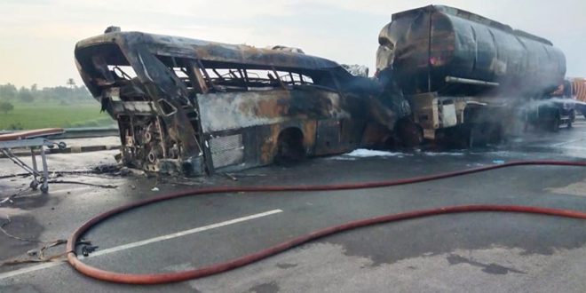 ونقلت وكالة شينخوا للأنباء عن مصادر محلية قولها إن الحادث وقع على الطريق السريع اليوم في منطقة جالالبور بيروالا عندما كانت حافلة ركاب تقل 26 شخصاً متوجهة من لاهور عاصمة البنجاب إلى مدينة كراتشي الساحلية جنوب البلاد حيث اصطدمت بصهريج نفطي ما أدى إلى اندلاع النيران بالمركبتين ومقتل 18 راكباً على الفور تم انتشال جثثهم في حين أصيب ثمانية أشخاص آخرين توفي اثنان منهم في المشفى.