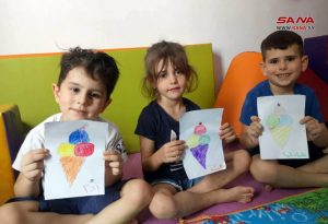 أما مدربة الفنون يارا محمد وهي خريجة أدب عربي فبينت أنها تمتلك خبرة بالتعامل مع الأطفال وتعليمهم وتنمية قدراتهم ومهاراتهم عن طريق الرسم وصنع أشكال فنية متنوعة.