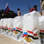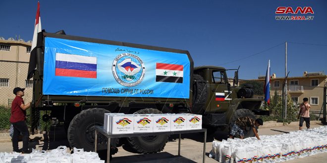 وذكر مسؤول المساعدات الإنسانية في مركز التنسيق الروسي بدمشق الملازم أول الكساندر فيدوبيوف في تصريح للصحفيين أنه تم توزيع 450 حصة غذائية أي نحو 5 أطنان على الأسر المهجرة والمقيمة في مركز الإقامة المؤقتة في بلدة الحرجلة مبيناً أن المساعدات تتضمن مواد “الشاي والزيت والطحين والمعلبات” إضافة إلى بسكويت للأطفال.