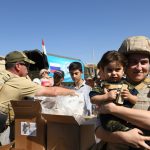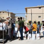 وزع مركز التنسيق الروسي اليوم مجموعة من الحصص الغذائية على المهجرين المقيمين في مركز الإقامة المؤقتة ببلدة الحرجلة في ريف دمشق.