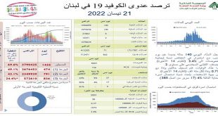 وذكرت الوزارة في تقريرها اليوم أن العدد التراكمي للحالات المؤكدة بالفيروس منذ تفشيه في لبنان ارتفع إلى 1201320 إصابة فيما ارتفع العدد الإجمالي للوفيات إلى 10593 حالة.
