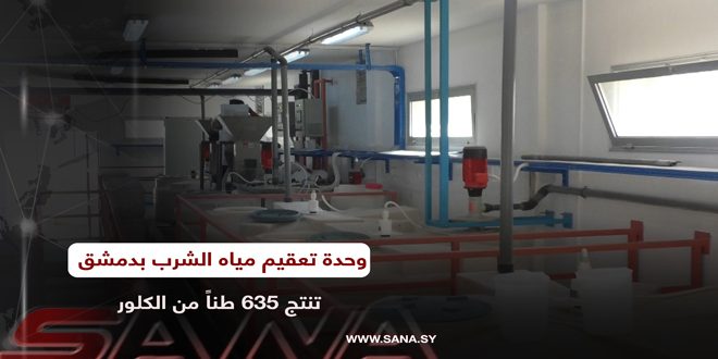 وحدة تعقيم مياه الشرب بدمشق وريفها تنتج 635 طناً من الكلور