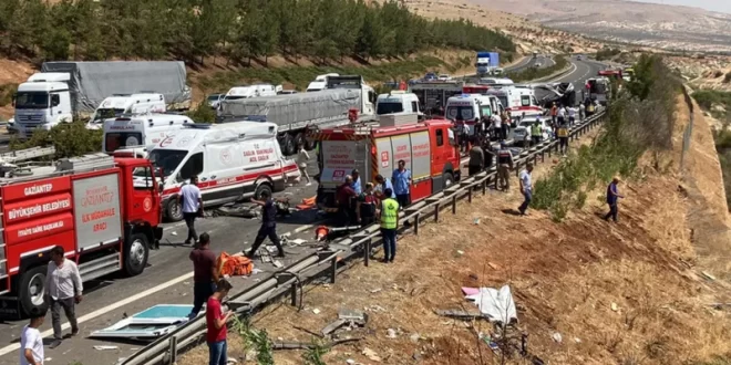 لقي 15 شخصاً مصرعهم وأصيب 22 آخرون جراء حادث مروري في ولاية غازي عنتاب جنوب تركيا.