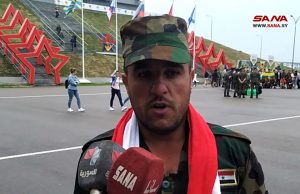 بدوره أعرب الملحق العسكري لدى السفارة السورية في موسكو العميد عدنان إبراهيم عن اعتزازه بفوز الفريق السوري بالمرتبة الأولى في جولة اليوم من سباق بياتلون الدبابات.