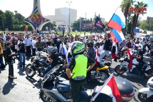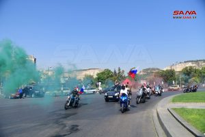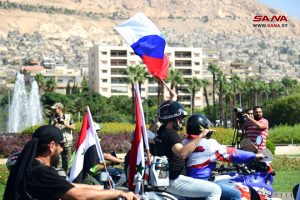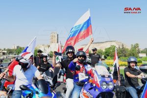 بدوره قال سامر العوام رئيس النادي السوري للدراجات السياحية: “جئنا لنشارك في الاحتفالية لنؤكد للعالم أن سورية وروسيا دولتان محبتان للسلام وهذا ما يرمز له العلم الروسي” كما قال رفعت بركات أحد المشاركين “نحن كشباب سوريين نعرب عن محبتنا للشعب الروسي الصديق الذي وقف إلى جانبنا في حربنا ضد الإرهاب”.