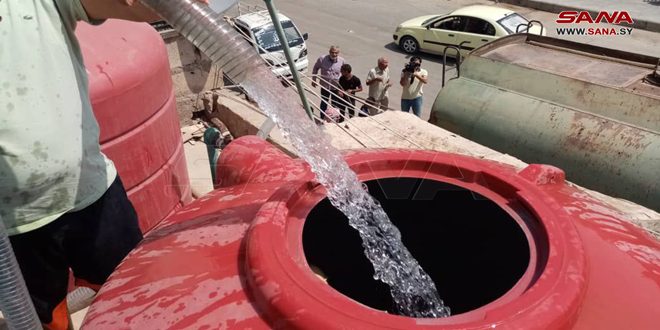 يستمر مجلس مدينة الحسكة لليوم الثاني على التوالي بتسيير عدد من الصهاريج لنقل المياه الصالحة للشرب وتأمينها للأهالي في ظل استمرار اعتداءات المحتل التركي ومرتزقته من الإرهابيين على خط المياه.