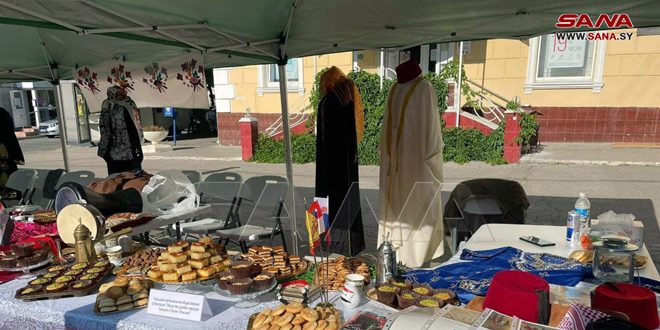 وفي تصريح لـ سانا بين ممثل الجالية الدكتور مجد حبقة أن الجناح السوري شمل المقتنيات التراثية والمشغولات اليدوية والزي الشعبي وكتيبات للتعريف بأهم المعالم التاريخية والحضارة في سورية إضافة إلى المأكولات والحلويات التي يشتهر بها المطبخ السوري منوها بالإقبال والاهتمام الواسع الذي حظي به الجناح السوري والزيارات الرسمية على رأسها زيارة رئيس جمهورية تشوفاشيا أليغ نيكولايف.