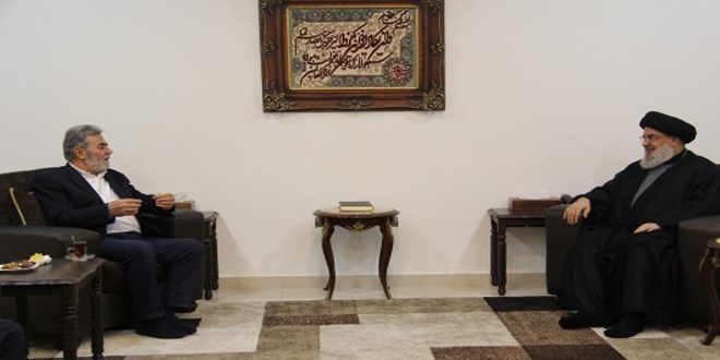 بحث الأمين العام لحزب الله في لبنان السيد حسن نصر الله مع أمين عام حركة الجهاد الفلسطينية زياد نخالة الأوضاع في الأراضي الفلسطينية المحتلة.