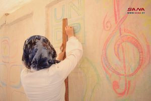 بدأت مجموعة من المتطوعين من أبناء محافظة درعا ضمن مشروع “لحن” بدعم برنامج الأمم المتحدة الإنمائي “يو ان دي بي” بالعمل على جدارية يبلغ طولها نحو 45 متراً لتزيين الشارع المقابل لدوار الساعة وسط مدينة درعا والمؤدي إلى مواقع وأسواق حيوية عدة.