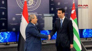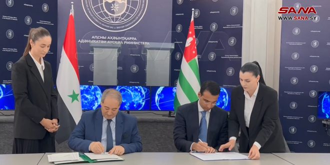وقع وزير الخارجية والمغتربين الدكتور فيصل المقداد مع نظيره الأبخازي اينال أردزينبا في سوخومي اليوم مذكرة تفاهم وتعاون في مجال المشاورات السياسية بين سورية وأبخازيا واعتمدا بياناً مشتركاً يحدد موقف البلدين تجاه الوضع الثنائي والدولي.