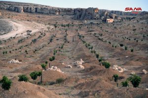 وفيما يخص مشروع التشجير الذي ينفذ في جرود يبرود أوضح الخطيب أنه يأتي لترميم الأشجار التي تم حرقها وقطعها من قبل الإرهابيين مثل أشجار الكرز والزيتون واللزاب.