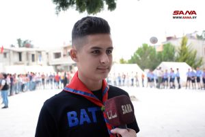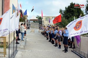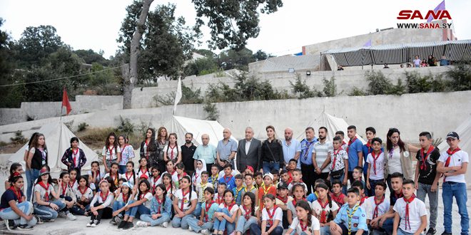 أمين فرع اللاذقية لحزب البعث العربي الاشتراكي هيثم إسماعيل اطلع على المعسكر وقام بتكريم المشاركين وتوزيع حقائب مدرسية وقرطاسية لهم استعداداً لاستقبال العام الدراسي الجديد.