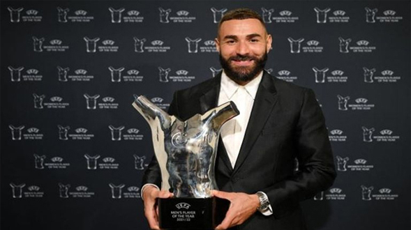 توج اللاعب الفرنسي كريم بنزيما مهاجم ريال مدريد الإسباني بجائزة أفضل لاعب في أوروبا عن موسم 2021-2022.