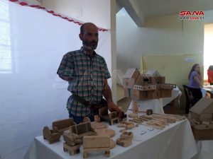 الجريح مهند أسعد مشارك بالمهرجان لأول مرة عبر عن سعادته بالمجسمات المنزلية التي صنعها من الكرتون وأدوات خشبية في حين ألقى الشاعر منهل حسن ثلاث قصائد منها قصيدة بعنوان “أجمل الأمهات” إلى جانب قصيدتين بالشعر المحكي “شو قال جدي وما أدراني”.
