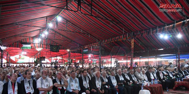 أقامت حركة الجهاد الفلسطينية اليوم مهرجاناً جماهيرياً وفاء لدماء الشهداء وتأكيداً على خيار المقاومة بعنوان “وحدة الساحات… الطريق إلى القدس” في مخيم اليرموك بدمشق.