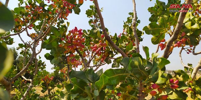 وأوضح المحمد أن جني محصول الفستق الحلبي يبدأ من منتصف شهر تموز حتى أيلول من كل عام وسورية تنتج أكثر من 20 صنفاً منه يحتل الصنف العاشوري المركز الأول بنسبة 70 بالمئة إضافة إلى العجمي وناب الجمل والبياضي وأبو ريحة ويبلغ عدد أشجاره نحو 9.500 ملايين شجرة منها 3.250 ملايين في حماة فيما تضرر ما يقارب مليون شجرة جراء الإرهاب والقطع والحرق لافتاً إلى أن المكتب بالتعاون مع مديريات الزراعة في المحافظات ومراكز البحوث الزراعية يقدم العديد من الخدمات والارشادات للمزارعين من حيث وضع برنامج متكامل لمكافحة الآفات التي تصيب الأشجار وفي مقدمتها حشرة الكابنودس ومعالجة المشكلات التي يعاني منها المزارعون.