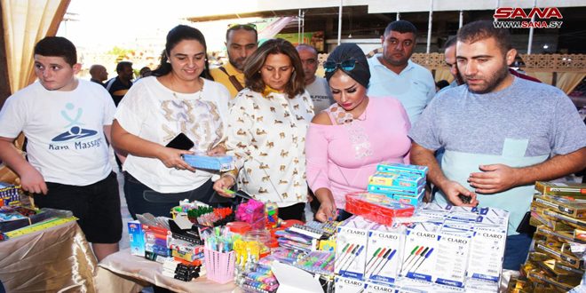 الفعالية التي جاءت بعنوان “الأمل بالعلم” تستمر لمدة ثلاثة أيام وتسهم وفق تصريح عضو المكتب التنفيذي لمجلس محافظة حلب كميت الشيخ لـ سانا بتأمين المستلزمات المدرسية للطلاب مع بدء العام الدراسي لتخفيف الأعباء المادية عن الأهالي والبيع من المنتج إلى المستهلك مباشرة دون وسيط.