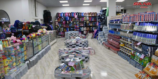 حمص-سانا افتتح فرع المؤسسة السورية للتجارة بالتعاون مع محافظة حمص معرض (أهلا بالمدرسة) في صالتي …