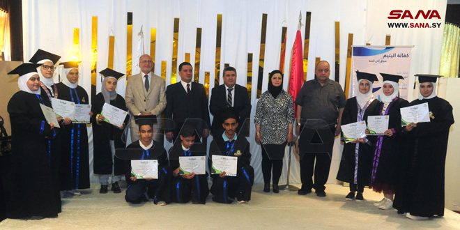 كرمت جمعية حقوق الطفل اليوم 65 طفلاً من الأطفال الأيتام وأطفال مركز فاقدي الرعاية الأسرية التابع للجمعية المتفوقين بامتحانات الشهادات العامة وذلك بالتعاون مع وزارة الشؤون الاجتماعية والعمل في فندق القيصر بلاس بدمشق.
