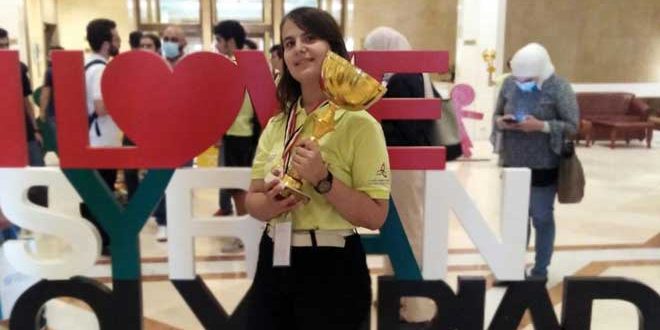وتابعت: “قدمت أيضا مشروع بحث بمادة علم الأحياء بعنوان استخراج مضادات الأكسدة من نباتات الأنابيب وحصلت في السنة الأولى بالمركز على المرتبة الأولى وفي الثاني الثانوي شاركت في الأولمبياد العلمي السوري لمادة الفيزياء وفي الثالث الثانوي شاركت في المسابقة الوطنية للنمذجة الرياضية وقدمت مع مجموعة من زملائي مشروعاً بحثياً في مادة المعلوماتية بعنوان استخدام شبكة حساسات لاسلكية لتحديد موقع هدف لمدفع مقاد ذاتياً وساعدني المشروع إضافة إلى المسابقات باختيار الفرع الجامعي المناسب لاهتماماتي وميولي العلمية”.