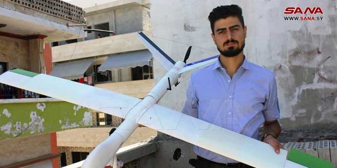 تضمن مشروع تخرج الشاب خضر محمد من كلية الهندسة الميكانيكية والكهربائية بجامعة البعث تصميم وتنفيذ طائرة مسيرة ذات جناح ثابت تتميز بنظام تحكم فعال ذي موثوقية عالية يعمل بطورين هما التحكم المباشر والملاحة الذاتية ويصل مدى عملها إلى مسافة 10 كم.