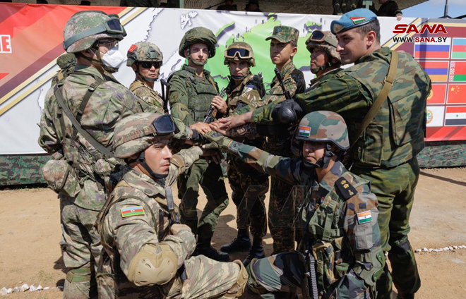 وأكد ممثلو الوحدات العسكرية للدول المشاركة وهي أذربيجان والجزائر وأرمينيا وبيلاروس والهند وكازاخستان وقيرغيزستان والصين ولاوس ومنغوليا ونيكاراغوا وسورية وطاجيكستان في كلماتهم على الطبيعة السلمية للتمرين المشترك الجاري والالتزام بمسار التفاهم والتعاون المتبادل وتعزيز الروابط العسكرية بين القوات المسلحة للدول المشاركة في المناورات ودعوا الأفراد العسكريين المشتركين إلى إظهار الكفاءة العالية والاحتراف والتفاعل في سياق التنفيذ المشترك لمهام التدريب القتالي.