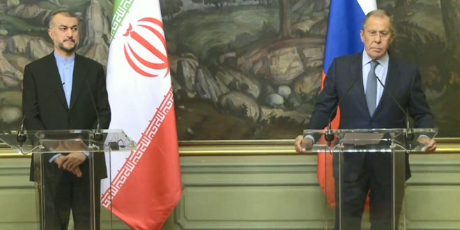 أكد وزيرا الخارجية الروسي سيرغي لافروف والإيراني حسين أمير عبد اللهيان ضرورة إيجاد حل سياسي للأزمة في سورية مشددين على وجوب رفع الإجراءات الاقتصادية الغربية القسرية المفروضة عليها والتي تنتهك قرارات مجلس الأمن الدولي.