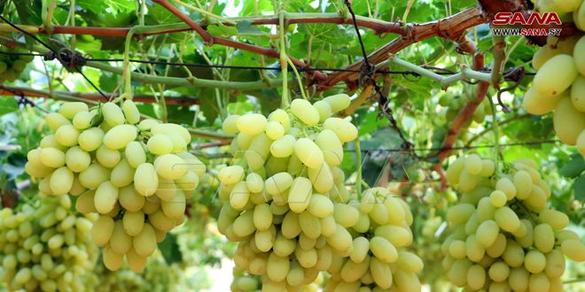 قدرت مديرية الإنتاج النباتي في وزارة الزراعة إنتاج محصول العنب لهذا العام بنحو 224 ألف طن من إجمالي المساحة المزروعة بالكرمة والتي تقدر بنحو 43 ألف هكتار من مختلف الأصناف حلواني وسلطي ودوماني وبلدي وزيني.