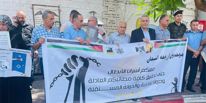 وذكرت وكالة وفا أن المشاركين في الوقفة التي نظمتها القوى الوطنية الفلسطينية رفعوا العلم الفلسطيني ولافتات وصوراً دعماً للأسرى في معتقلات الاحتلال وضرورة مساندتهم منددين بالانتهاكات الإسرائيلية المتواصلة بحقهم ولاسيما المرضى والمضربين عن الطعام منهم.