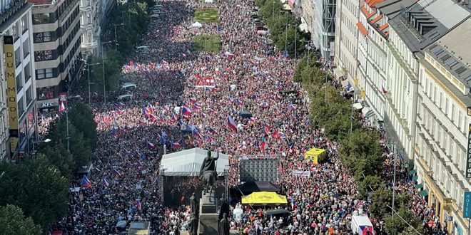 تظاهر أكثر من 70 ألف مواطن تشيكي بعد ظهر اليوم وسط العاصمة التشيكية براغ للمطالبة بالتحرر من التبعية لحلف الناتو والاتحاد الأوروبي.