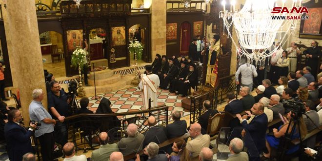 احتفل مساء اليوم بافتتاح كنيسة رقاد السيدة العذراء ومطرانية الروم الأرثوذكس بعد إعادة ترميمهما من الأضرار التي لحقت بهما جراء الإرهاب في حي الجديدة بمدينة حلب القديمة.