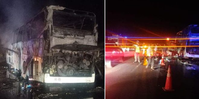 وذكرت وزارة الداخلية في بيان اليوم أن الحريق أتى على كامل البولمان مشيرة إلى أن الأضرار اقتصرت على الماديات فقط.
