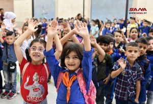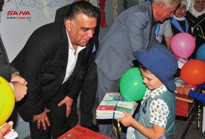 مدير تربية ريف دمشق ماهر فرج أكد أن الاحتفال باليوم الأول من العام الدراسي الجديد هو أن المدارس جاهزة لاستقبال الطلبة ورسالة تعزيز لثقة الأهالي بالمؤسسات التعليمية الحكومية ودورها في تنشئتهم من الناحية التربوية والاجتماعية والصحية.