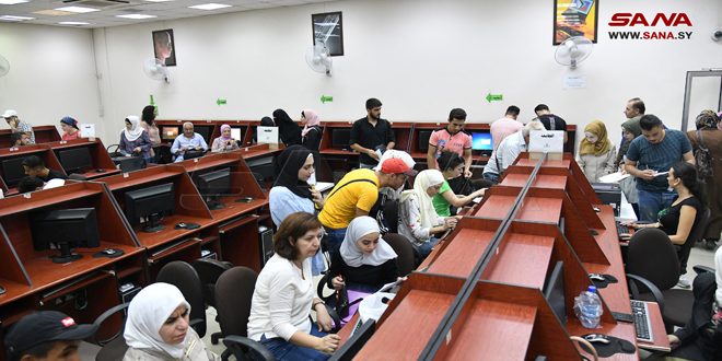 المهندس عمر المصري المشرف على مركز كلية الهندسة المدنية بجامعة دمشق بين أن المركز مجهز بـ 50 حاسباً مع الطابعات المرافقة ويستقبل في قسميه طلبات المفاضلة العامة ومفاضلات (ذوي الشهداء وأبناء أعضاء الهيئة التدريسية وذوي الإعاقة).