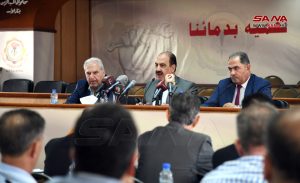 وقال إنه “تم تعديل أنظمة الصناديق الاجتماعية الخاصة بالطبقة العاملة لتحسين عمليات الإقراض ورفعها وإعادة تأهيل المركز الصحي في عدرا العمالية وإحداث محكمة إدارية في دير الزور ودعم الأندية الرياضية بإعانات مالية من صناديق النشاطات الثقافية والمشاركة في ورشات لتقييم سياسات الأجور”.