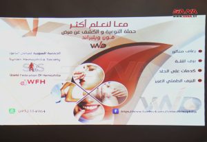 تواصل الجمعية السورية لمرضى الناعور فعاليات حملتها التوعوية حول التعريف بمرض فون ويلبراند وأعراضه وآلية الكشف عنه.