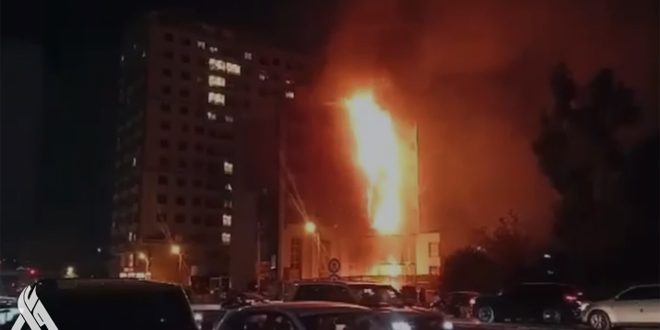 أصيب أربعة اشخاص جراء حريق كبير اليوم في فندق وسط محافظة أربيل شمال العراق.