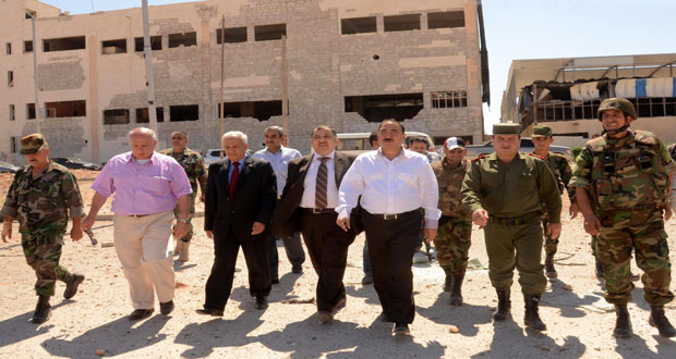 واطلع وزير الصناعة ومحافظ حلب وعدد من المديرين بالمحافظة خلال جولة ميدانية على المدينة الصناعية بحلب على حجم الدمار الذي ألحقته المجموعات الإرهابية بالمعامل وسرقة الاتها وتدمير بنيتها التحتية حيث أشار وزير الصناعة إلى أن حجم الدمار الكبير هو دليل على ما تحمله هذه العصابات من فكر هدام.