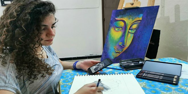 الموهبة الفطرية والشغف بالفن دفعا الشابة آية سمير معصرة من قرية بيت السلطان بمحافظة طرطوس إلى استثمار كل إمكانياتها بالتدريب والبحث المتواصل لتطوير موهبتها بالرسم وصقلها وترك بصمة مميزة في لوحاتها بالتوازي مع تفوقها الدراسي ومتابعة تحصيلها العلمي.