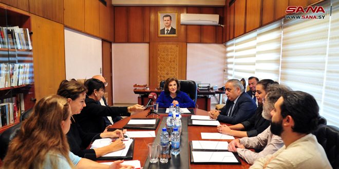 بحثت الدكتورة بثينة شعبان المستشارة الخاصة في رئاسة الجمهورية اليوم مع وفد جمعية البندقية للصداقة الإيطالية العربية سبل تعزيز التعاون والتبادل الثقافي بين البلدين.