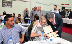 وشارك في تكريم الجرحى الناجحين أمين فرع دمشق لحزب البعث العربي الاشتراكي محمد حسام السمان ومديرة مشروع جريح الوطن في دمشق وريفها غنوة عباس بحضور عدد من أعضاء المكتب التنفيذي في المحافظة ورئيس نادي المحافظة محمد السباعي.