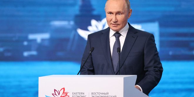 وأوضح بوتين في كلمة اليوم خلال الجلسة العامة لمنتدى الشرق الاقتصادي في مدينة فلاديفيستوك الروسية أن الغرب يريد فرض نماذج سلوك خاصة به تخدم مصالحه فقط مشيراً إلى أن العالم يمر بتغيرات لا رجعة فيها في نظام العلاقات الدولية بأكمله واحتلت دول منطقة آسيا والمحيط الهادي مركزاً جديدا في النمو الاقتصادي بينما يحاول الغرب التشبث بالنظام العالمي القديم ويواصل فرض العقوبات على الدول التي ترفض إملاءاته دون أي اهتمام بمصالح الشعوب.