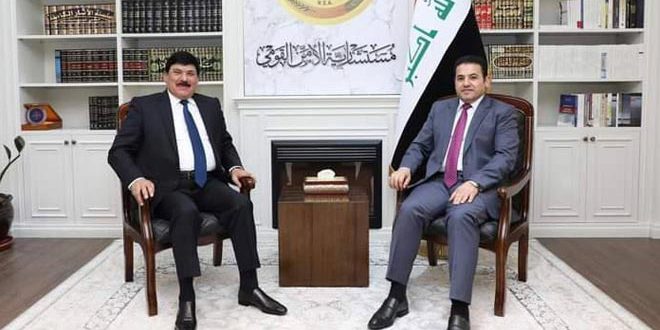 بحث مستشار الأمن القومي العراقي قاسم الأعرجي مع سفير سورية في بغداد سطام جدعان الدندح مستجدات الأوضاع وسبل تعزيز العلاقات بين البلدين والشعبين الشقيقين.