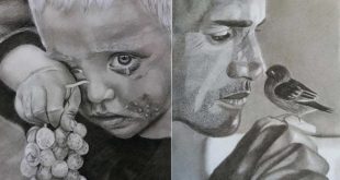 وتشير إلى أنه رغم معاناة عبيدة من إعاقة الصمم واعتلال شبكية العين لكن ذلك لم يثنه عن الاجتهاد على نفسه حتى صار فناناً موهوباً مشهود له من قبل من حضر المعارض الفنية التي شارك فيها في حماة.
