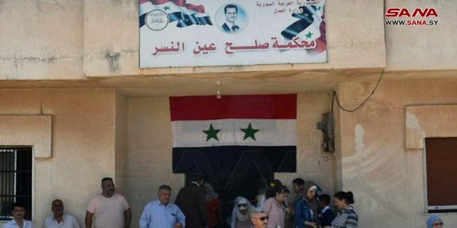 2022-09-10حمص-سانا أفادت مراسلة سانا بافتتاح محكمة صلح في ناحية “عين النسر” شرق حمص والتي ستقدم خدماتها لـ “٢٢” قرية من المناطق المحيطة. ريف حمص الشرقي عين النسر محكمة صلح 2022-09-10Rem