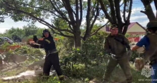 ونقل موقع روسيا اليوم عن العمدة قوله إنه “وفقاً للمعلومات الواردة أطلق الفاشيون الأوكرانيون النار على سوق بالقرب من محطة السكة الحديدية وبحسب المعطيات الأولية قتل مدني وأصيب آخر واشتعلت النيران في مراكز التسوق نتيجة القصف”.