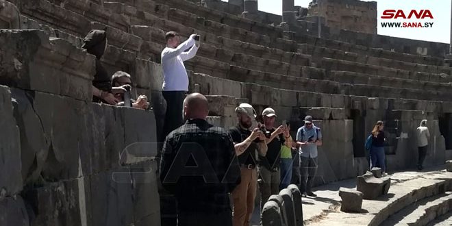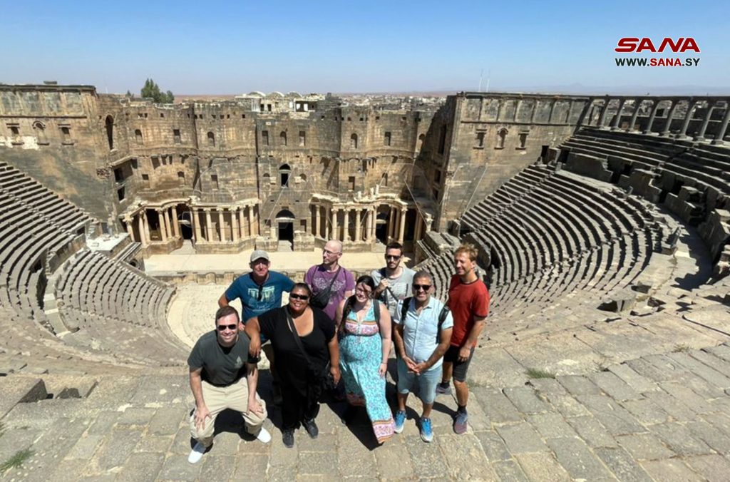زارت مجموعتان سياحيتان من دول أوروبية إضافة إلى الصين مدينة بصرى الشام في ريف درعا اليوم بهدف الاستمتاع بجمال آثارها القديمة وخاصة مدرجها.